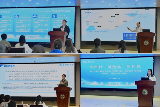 2026年材料行业专场招聘会在徐汇校区先进材料大楼顺利举行。本次活动同步举办第十八届材料节开幕式,将学科品牌活动、产业人才对接、就业指导服务有机融合,一体推进思政引领、实践育人与就业赋能。
